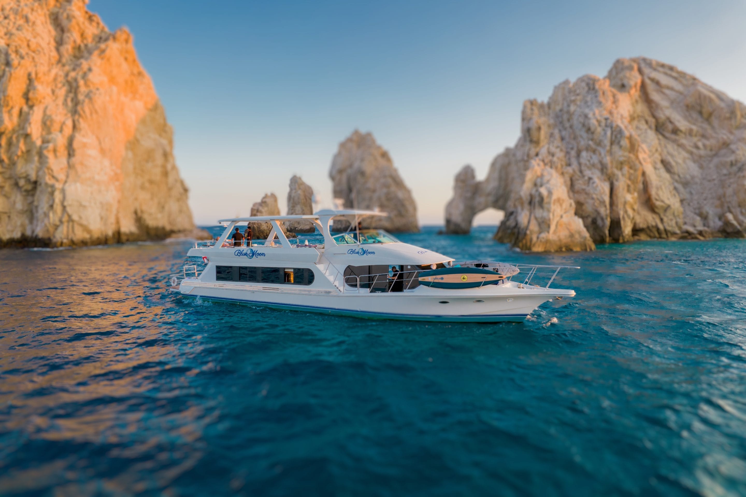 Ready to elevate your Arizona adventure with a touch of luxury and excitement? Look no further than Blue Moon Cabo for an unforgettable private yacht charter experience. Immerse yourself in the beauty of the Southwest on our 74′ Bluewater Coastal Cruiser, complete with all the amenities you need for a lavish day on the water. From our spacious upper deck that accommodates 40 guests and ambient blue LED lighting to our all-inclusive dining with a private chef and open bar, your time with us promises to be nothing short of spectacular. Whether you’re whale watching in the winter, dancing under the stars, or simply soaking in the scenic views, we have everything you need to create lasting memories. Don’t miss out on the ultimate boating experience near Phoenix. Book Now and set sail with Blue Moon Cabo for a journey filled with luxury, comfort, and adventure.